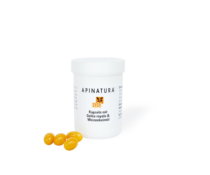 60 Kapseln à 100 mg Gelée Royale und 200 mg Weizenkeimöl.